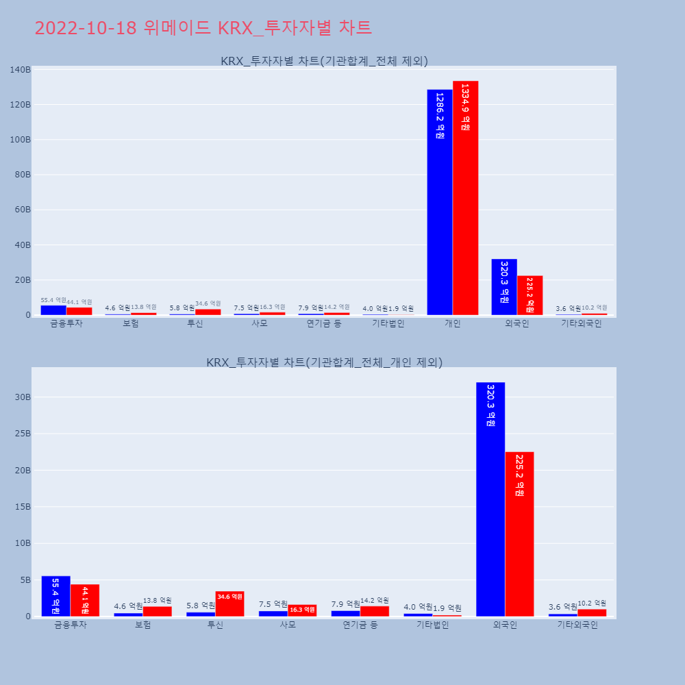 | 외국인 | 281,478 | 123,640 | -157,838 | 10,442,168,800 | 4,611,864,800 | -5,830,304,000 |
