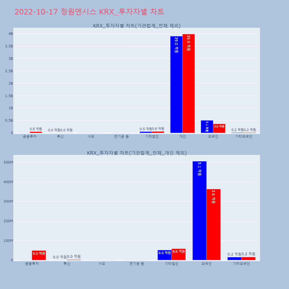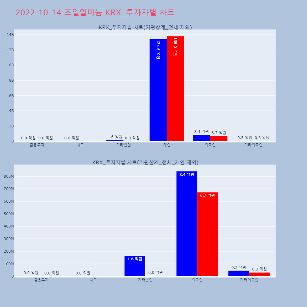 | 외국인 | 49,621 | 33,132 | -16,489 | 708,186,900 | 466,949,500 | -241,237,400 |