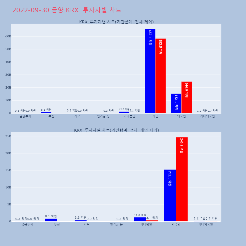 | 투자기관 | 거래량_매도 | 거래량_매수 | 거래량_순매수 | 거래대금_매도 | 거래대금_매수 | 거래대금_순매수 |