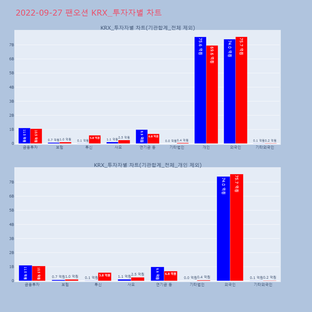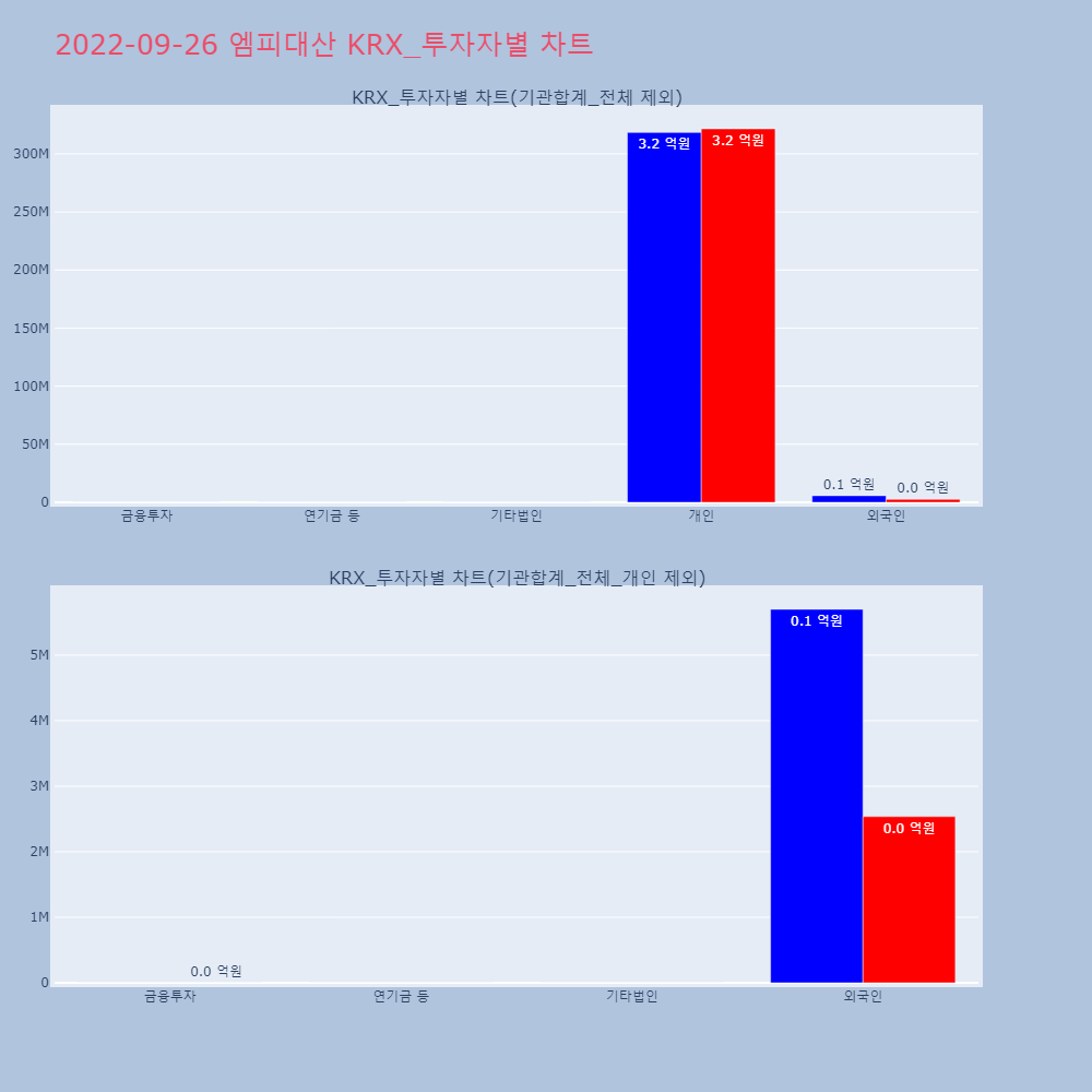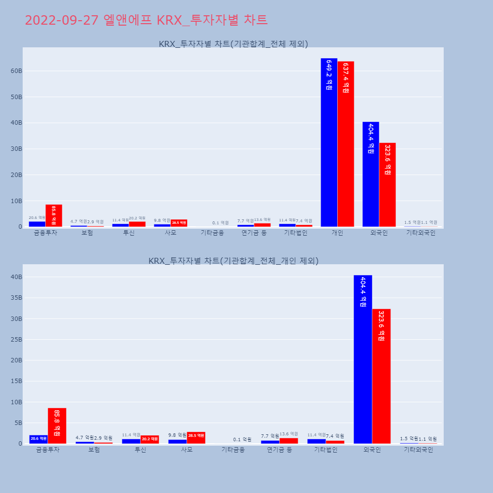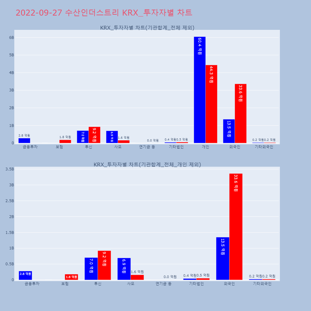 | 투자기관 | 거래량_매도 | 거래량_매수 | 거래량_순매수 | 거래대금_매도 | 거래대금_매수 | 거래대금_순매수 |