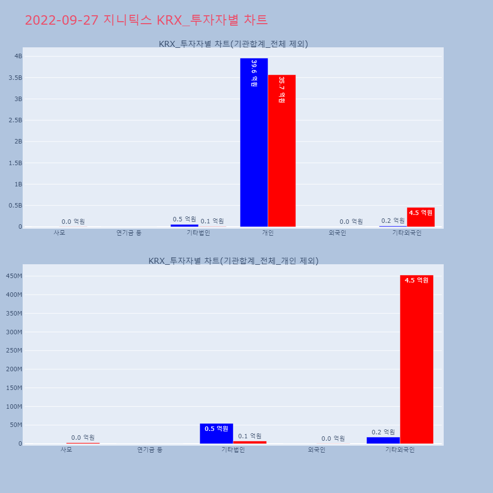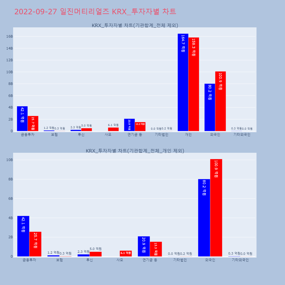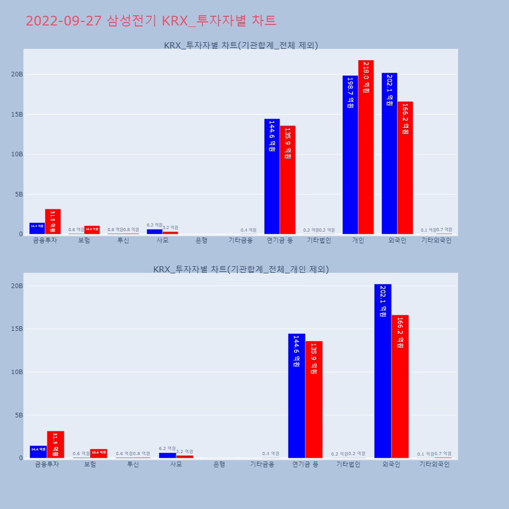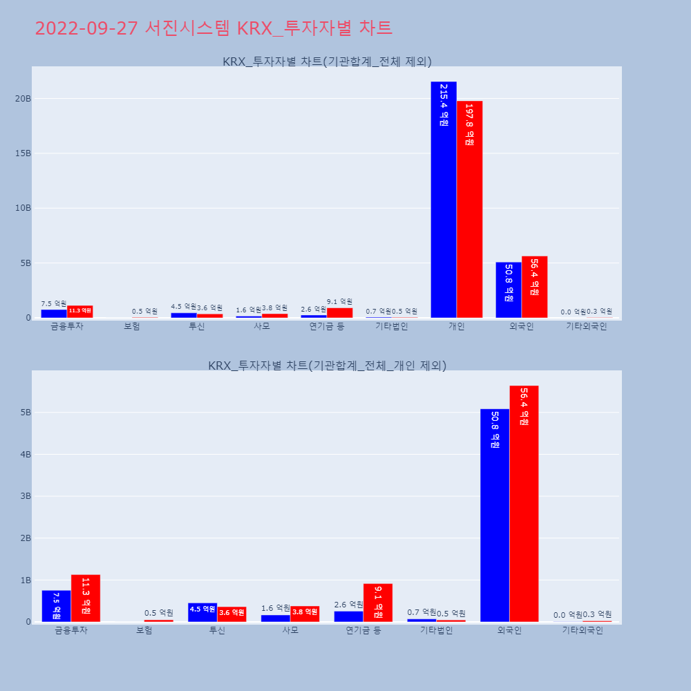 | 투자기관 | 거래량_매도 | 거래량_매수 | 거래량_순매수 | 거래대금_매도 | 거래대금_매수 | 거래대금_순매수 |