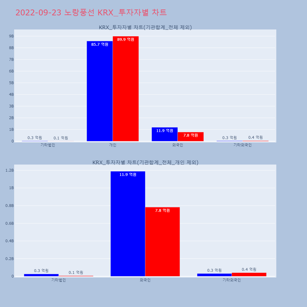 | 투자기관 | 거래량_매도 | 거래량_매수 | 거래량_순매수 | 거래대금_매도 | 거래대금_매수 | 거래대금_순매수 |