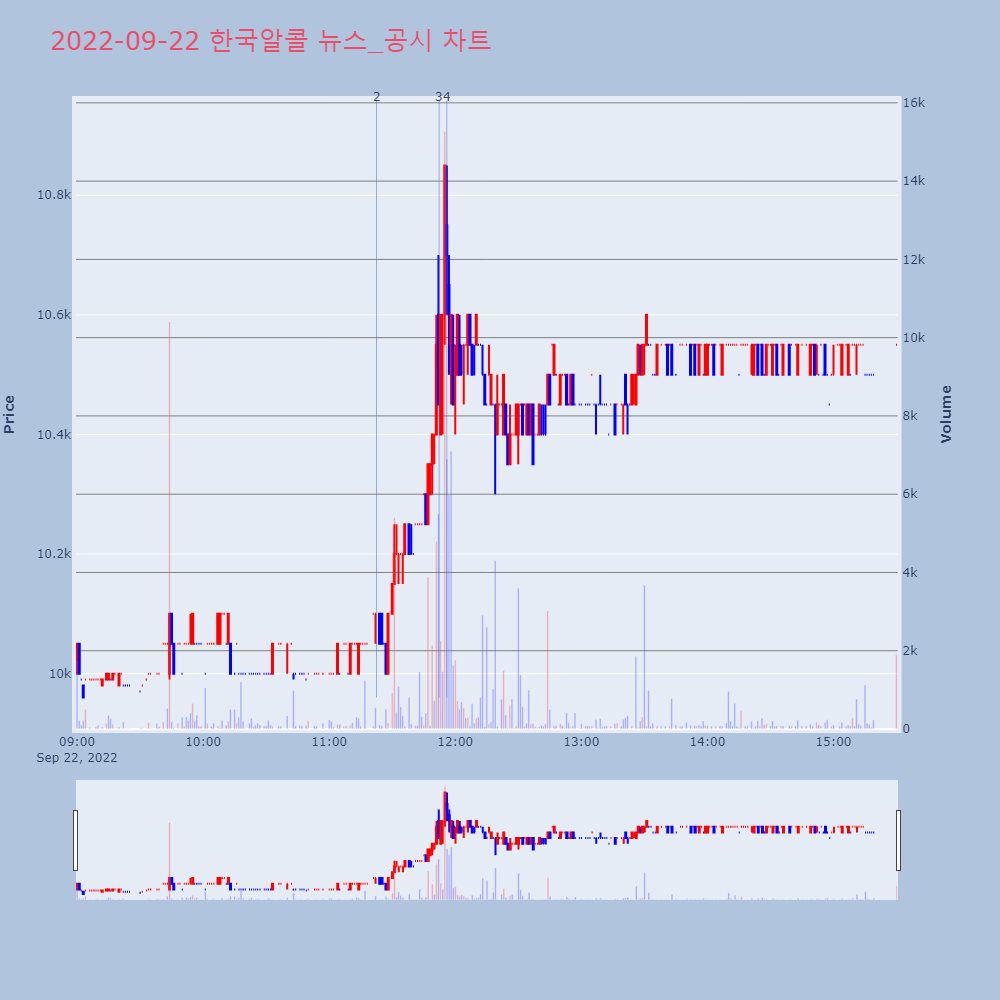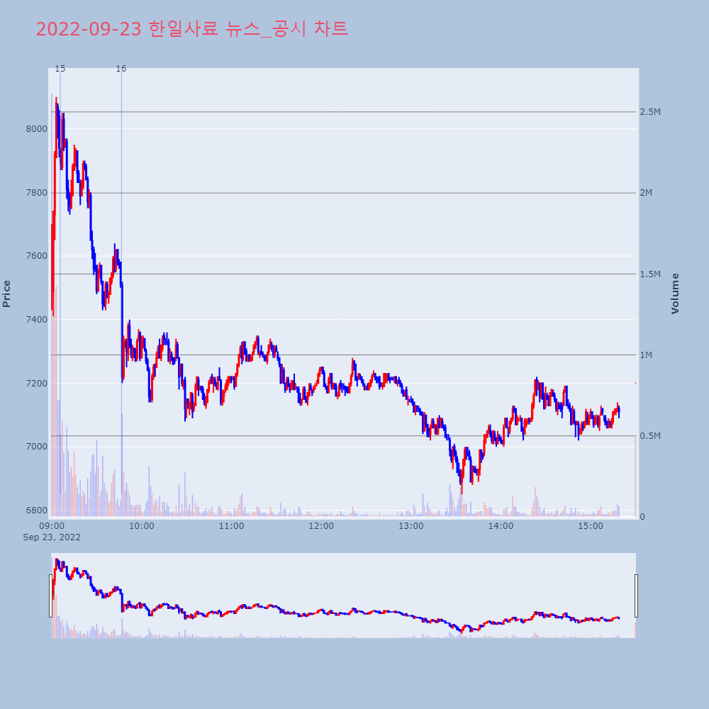 | 9 | 대주산업, -10.00% VI 발동대주산업이 VI가 발동했다. 전일 대비 10.00% 하 | 조선경제 | 대주산업 | 2022-09-23 11:32:55 |