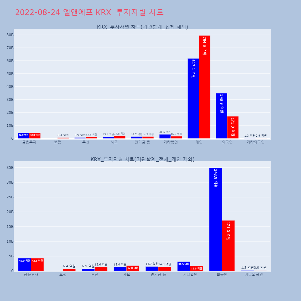 | 투자기관 | 거래량_매도 | 거래량_매수 | 거래량_순매수 | 거래대금_매도 | 거래대금_매수 | 거래대금_순매수 |