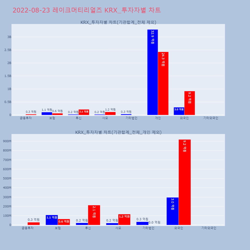 | 투자기관 | 거래량_매도 | 거래량_매수 | 거래량_순매수 | 거래대금_매도 | 거래대금_매수 | 거래대금_순매수 |