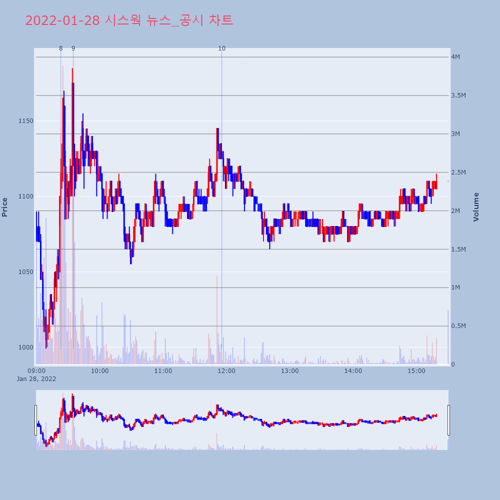 1 | 시스웍(269620) 상승폭 확대 +9.73% 제목 : 시스웍(269620)상승폭 확대 +9.73%기 | 인포스탁 | 시스웍 | 2022-01-27 10:06:37 |