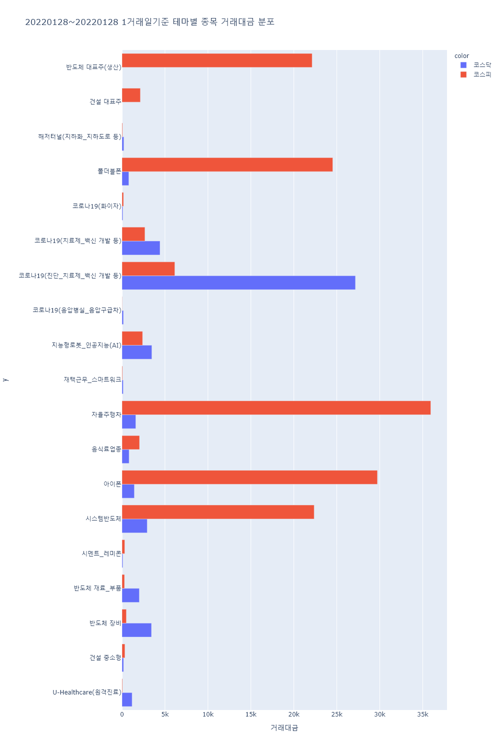 | 코로나19(진단_치료제_백신 개발 등) | [코로나19(진단/치료제/백신 개발 등)] 국내 신규 코로나19 확진자 1만6,096명, 사상 최다치 재경신 등에 상승(주도주 : 휴마시스, 수젠텍, 엑세스바이오) | CJ 바이오사이언스,EDGC,JW중외제약,SK바이오사이언스,SV인베스트먼트,강스템바이오텍,골드퍼시픽,국전약품,나노엔텍,녹십자,녹십자엠에스,뉴지랩파마,대웅,대웅제약,드림텍,디엔에이링크,랩지노믹스,레고켐바이오,마이크로디지탈,마크로젠,메디콕스,미코,미코바이오메드,바디텍메드,바이오니아,바이오리더스,바이오스마트,바이오톡스텍,비씨월드제약,삼천당제약,셀리드,셀리버리,셀트리온,소마젠,수젠텍,시너지이노베이션,신풍제약,씨젠,씨티씨바이오,압타바이오,앤디포스,앱클론,얼라인드,에스디바이오센서,에이비온,엑세스바이오,엔지켐생명과학,오상자이엘,옵티팜,우리들휴브레인,유나이티드제약,유바이오로직스,유틸렉스,인바이오젠,인트론바이오,일양약품,제넥신,제놀루션,제일약품,종근당,지노믹트리,진매트릭스,진시스템,진원생명과학,카이노스메드,코미팜,퀀타매트릭스,크리스탈지노믹스,파미셀,팜젠사이언스,펩트론,피씨엘,피에이치씨,한국파마,현대바이오,휴마시스,휴온스, |