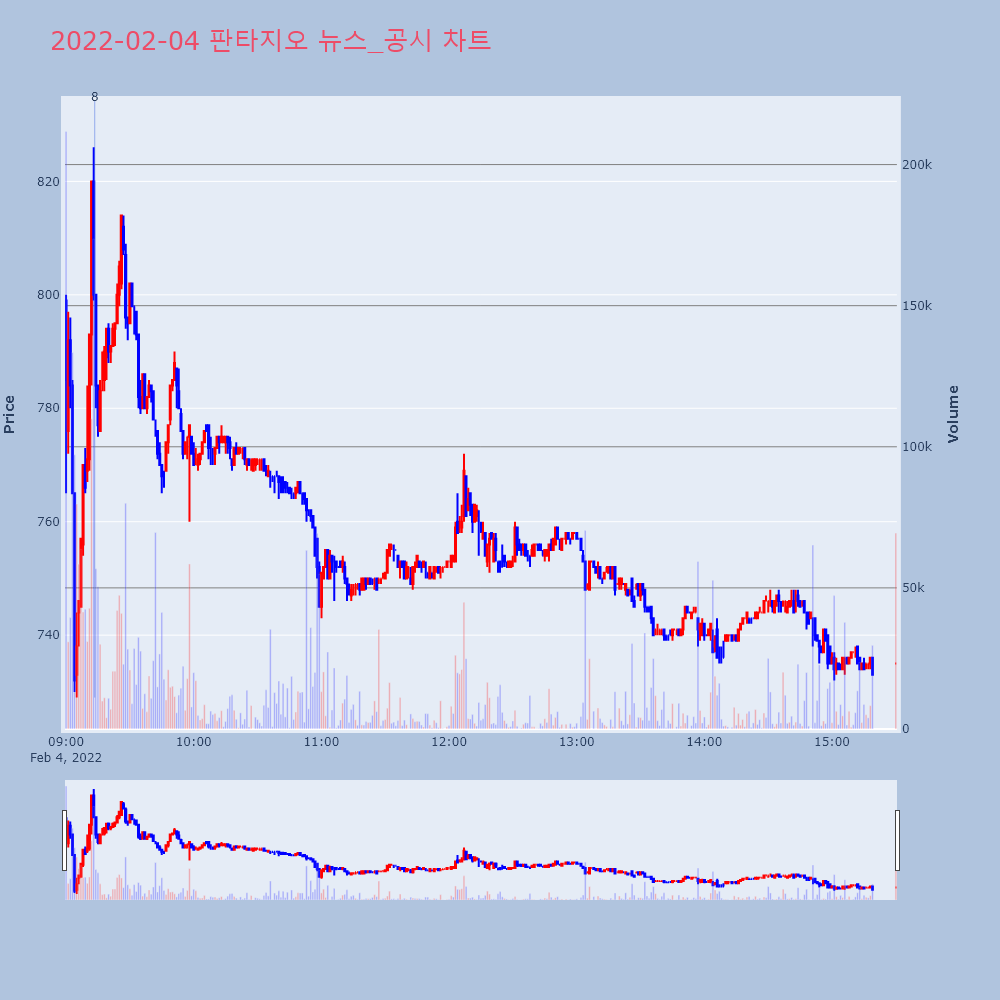 | 8 | 판타지오(032800) 거래재개 첫날 상승 +3.38% 제목 : 판타지오(032800)거래재개 첫날 상승 +3 | 인포스탁 | 판타지오 | 2022-02-04 09:13:28 |