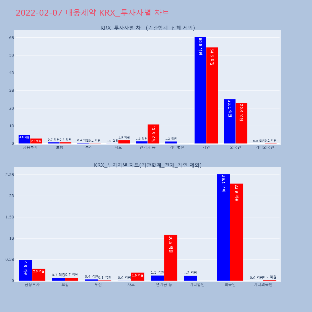 | 개인 | 60,335 | 58,911 | -1,424 | 9,687,150,500 | 9,434,636,500 | -252,514,000 |