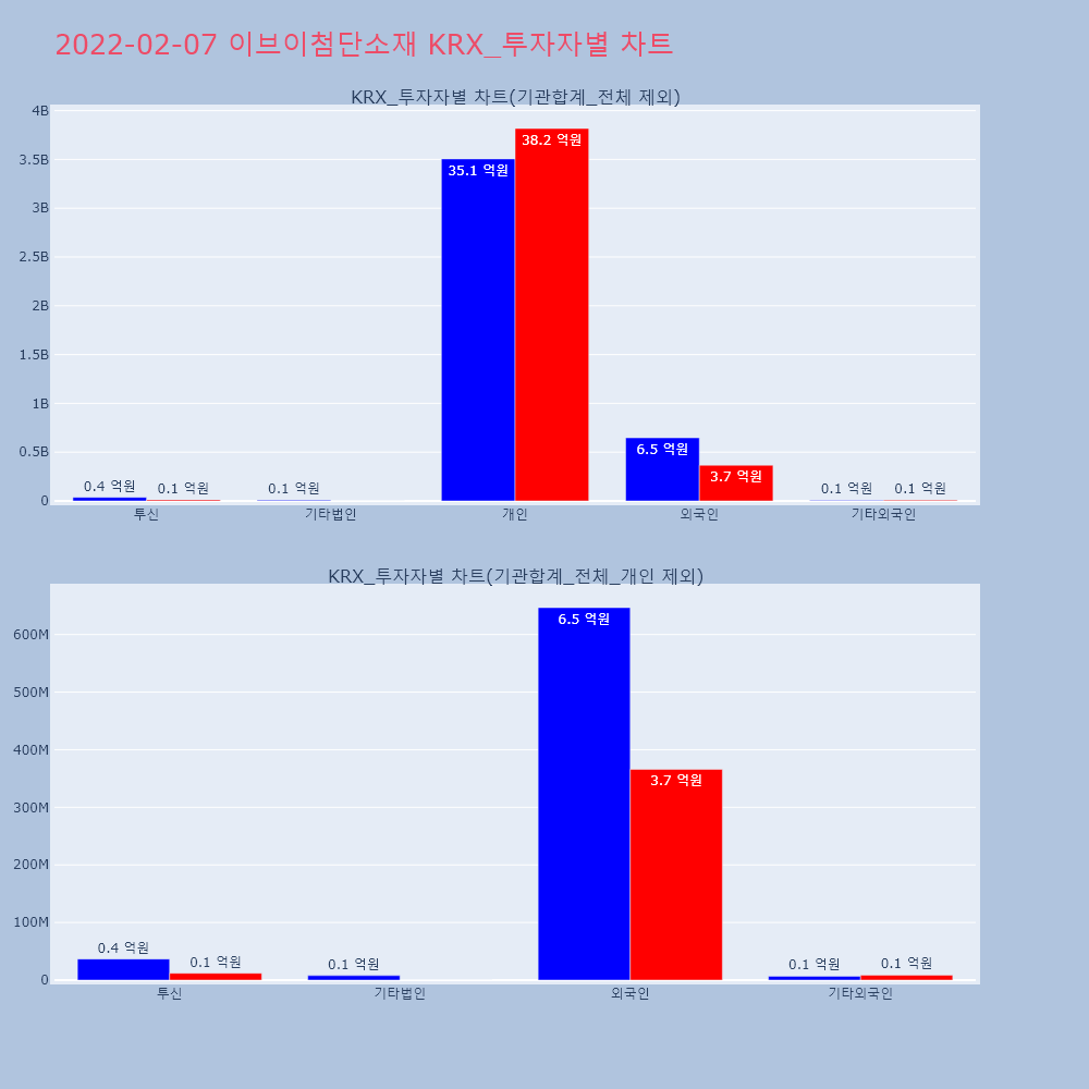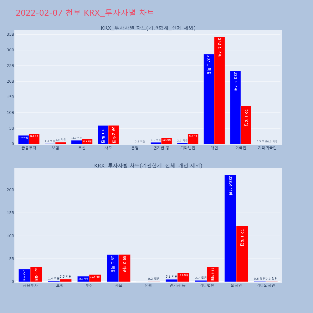 | 외국인 | 21,377 | 9,521 | -11,856 | 252,736,100 | 113,227,700 | -139,508,400 |