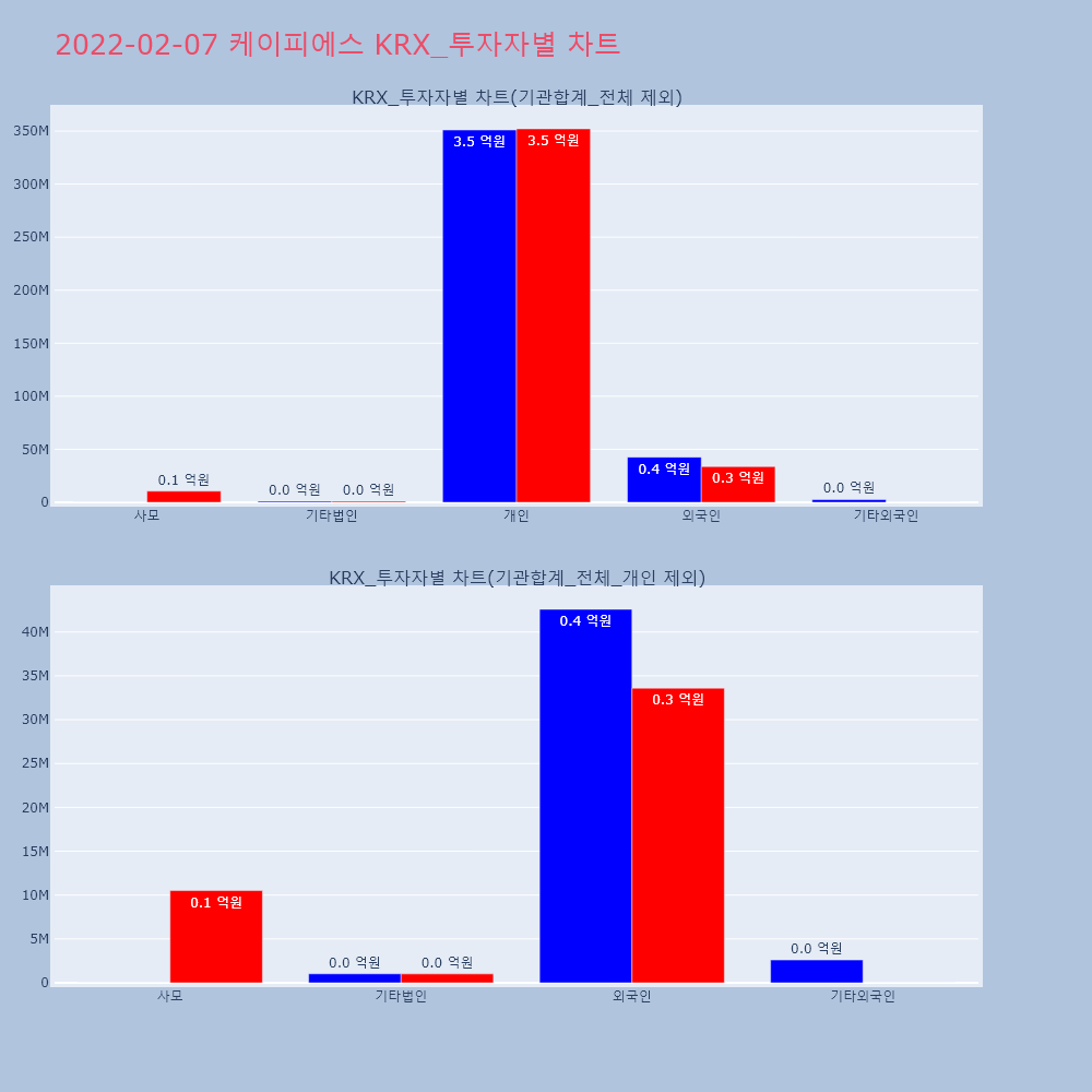 | 투자기관 | 거래량_매도 | 거래량_매수 | 거래량_순매수 | 거래대금_매도 | 거래대금_매수 | 거래대금_순매수 |