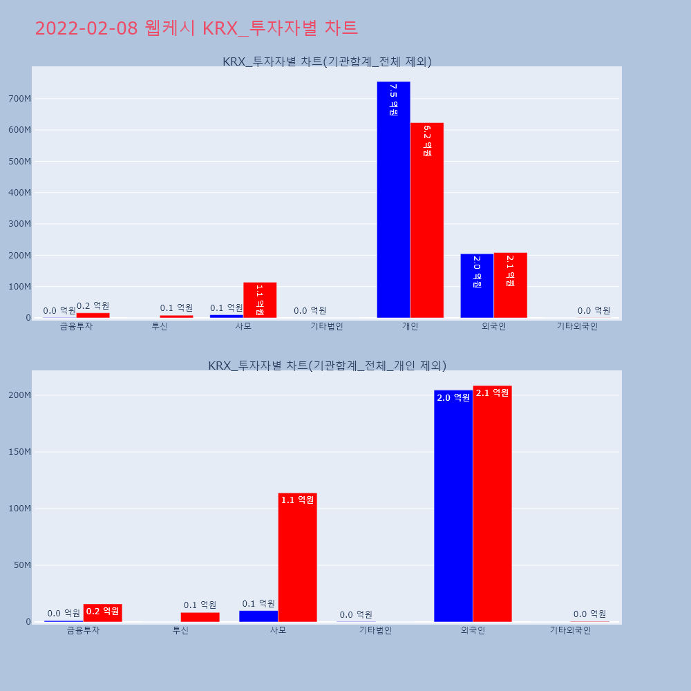 | 투자기관 | 거래량_매도 | 거래량_매수 | 거래량_순매수 | 거래대금_매도 | 거래대금_매수 | 거래대금_순매수 |