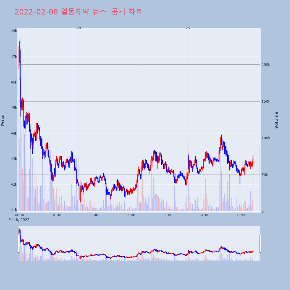 | 24 | 일동제약, -11.59% VI 발동일동제약(249420)이 VI가 발동했다. 전일 대비 | 조선경제 | 일동제약 | 2022-02-08 10:37:14 |