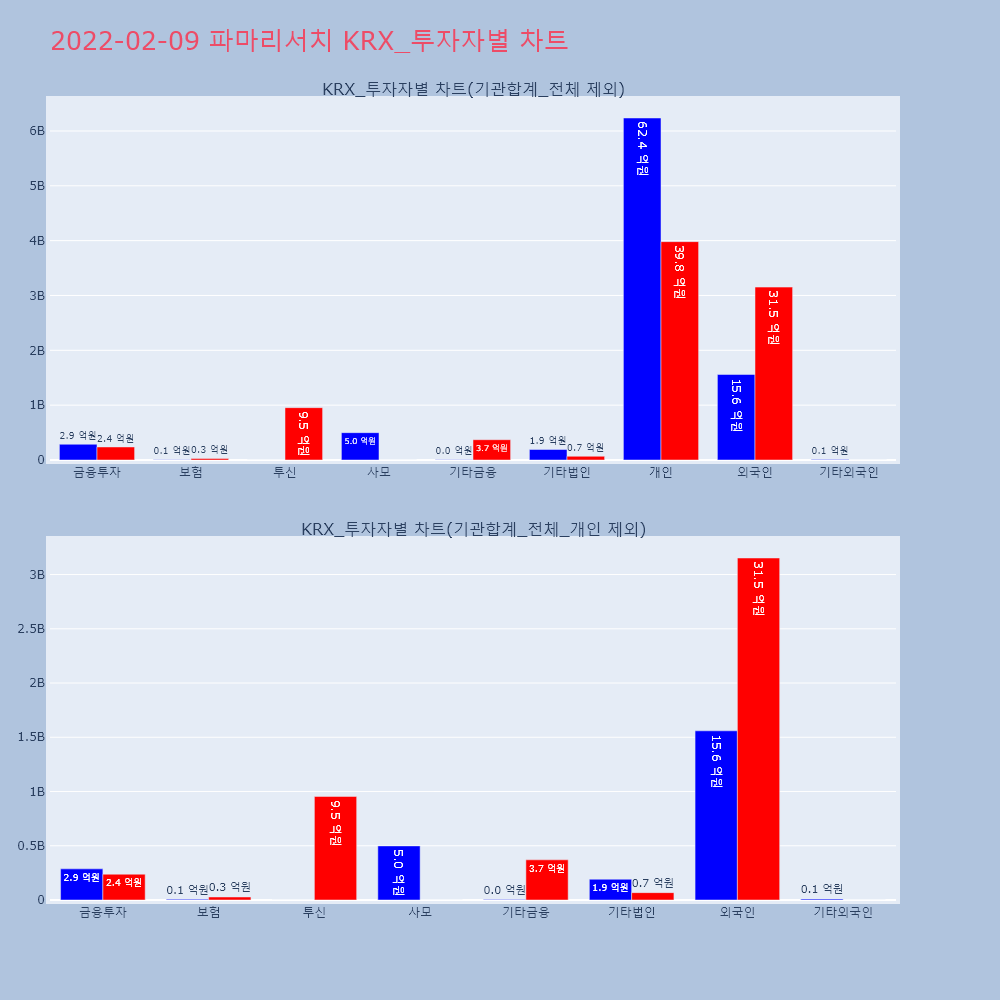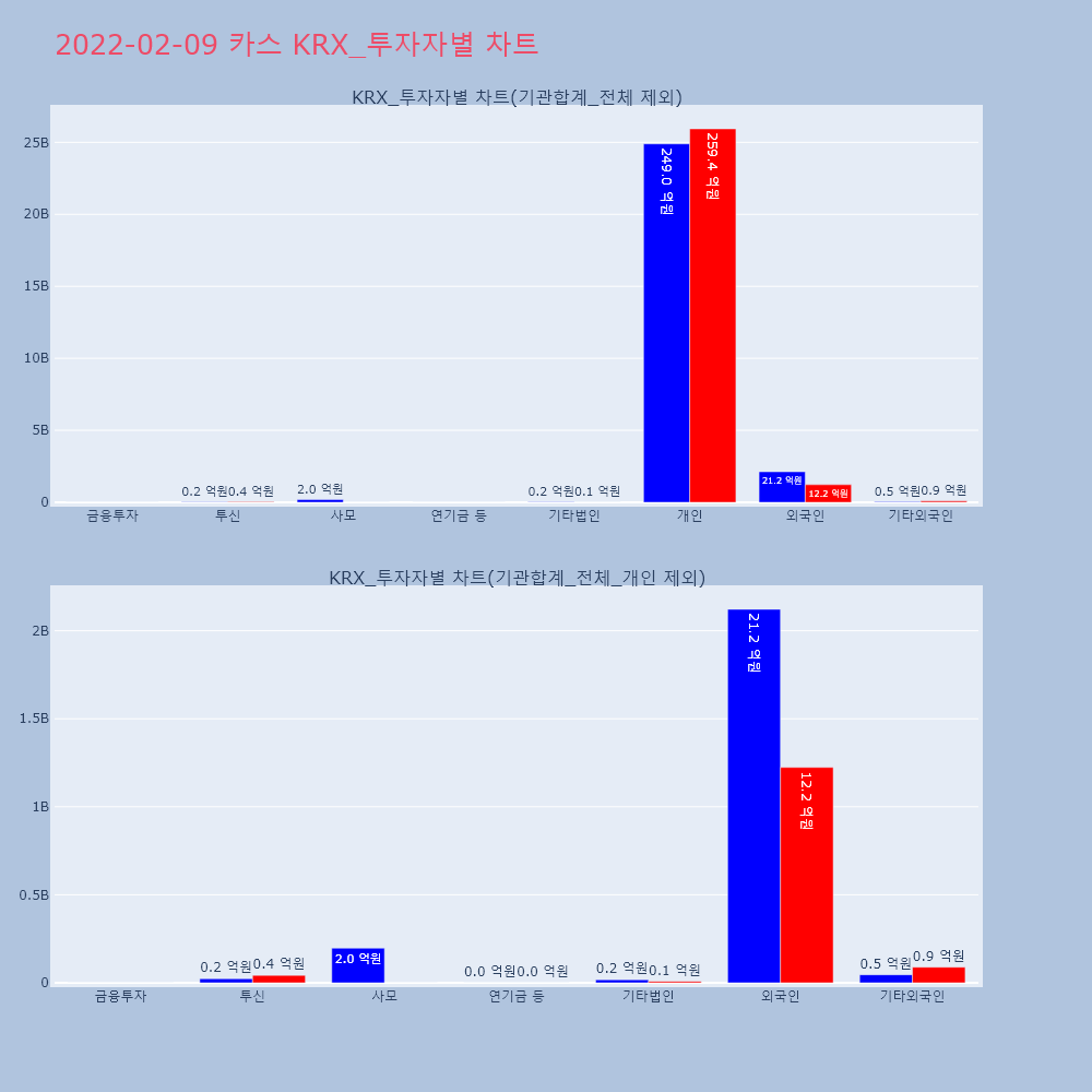 | 개인 | 78,130 | 49,641 | -28,489 | 6,236,449,500 | 3,982,102,300 | -2,254,347,200 |