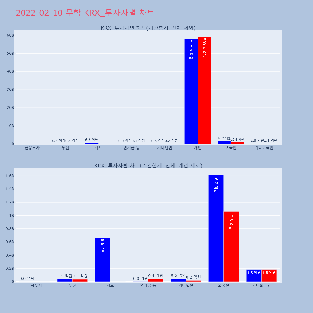 | 외국인 | 1,494,599 | 1,429,873 | -64,726 | 12,075,622,200 | 11,500,138,810 | -575,483,390 |