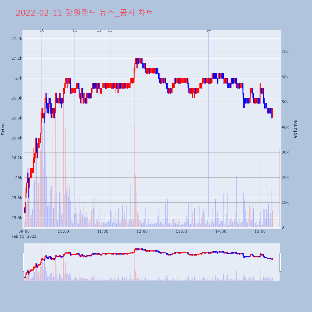 | 6 | [잠정실적]강원랜드 4Q 실적, 매출액 2421억원 전년동기 대비 84% 증가... [서울=뉴스핌] 로보뉴스 = 상승하던 강원랜드의 영업이 | 뉴스핌 | 강원랜드 | 2022-02-10 18:59:11 |