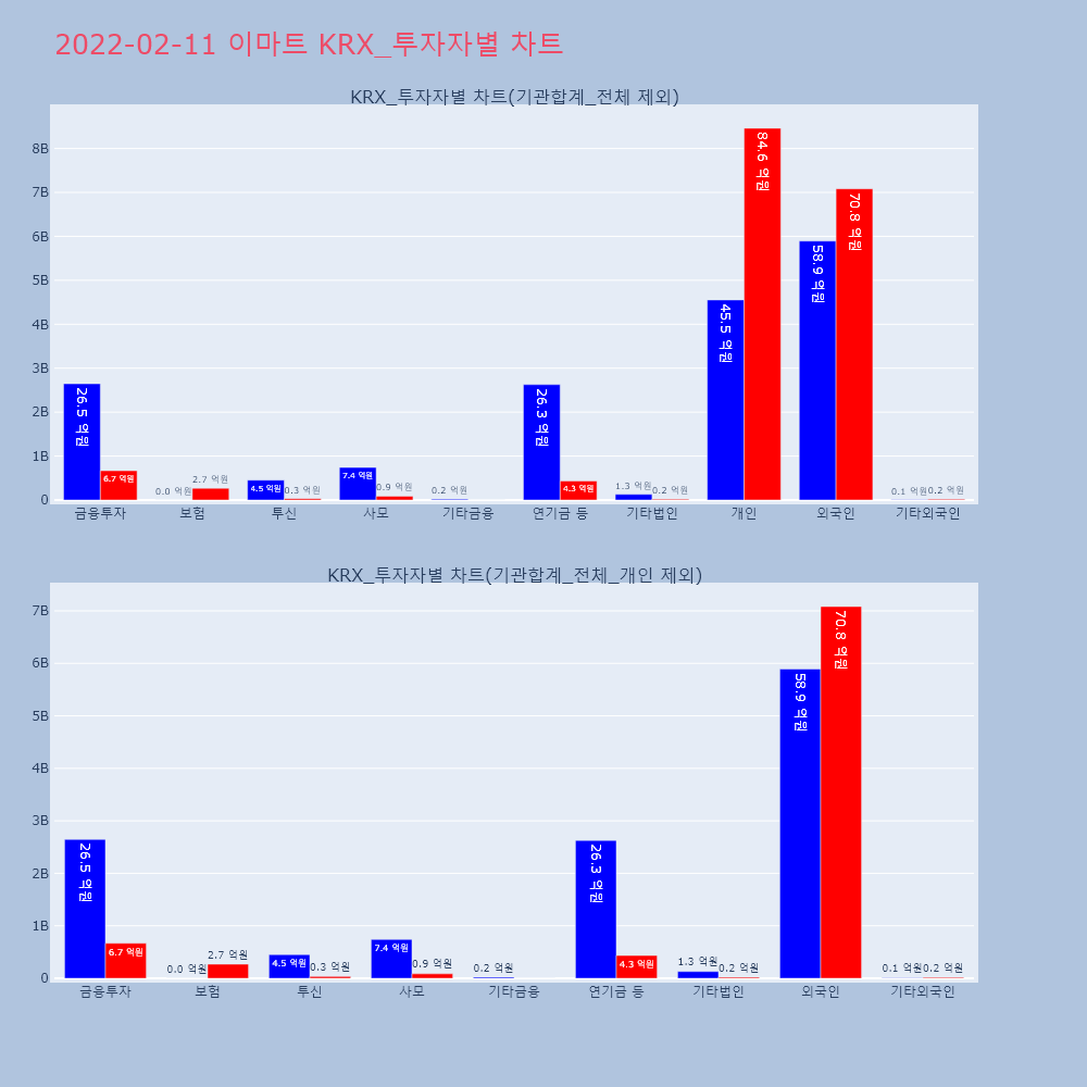 | 투자기관 | 거래량_매도 | 거래량_매수 | 거래량_순매수 | 거래대금_매도 | 거래대금_매수 | 거래대금_순매수 |