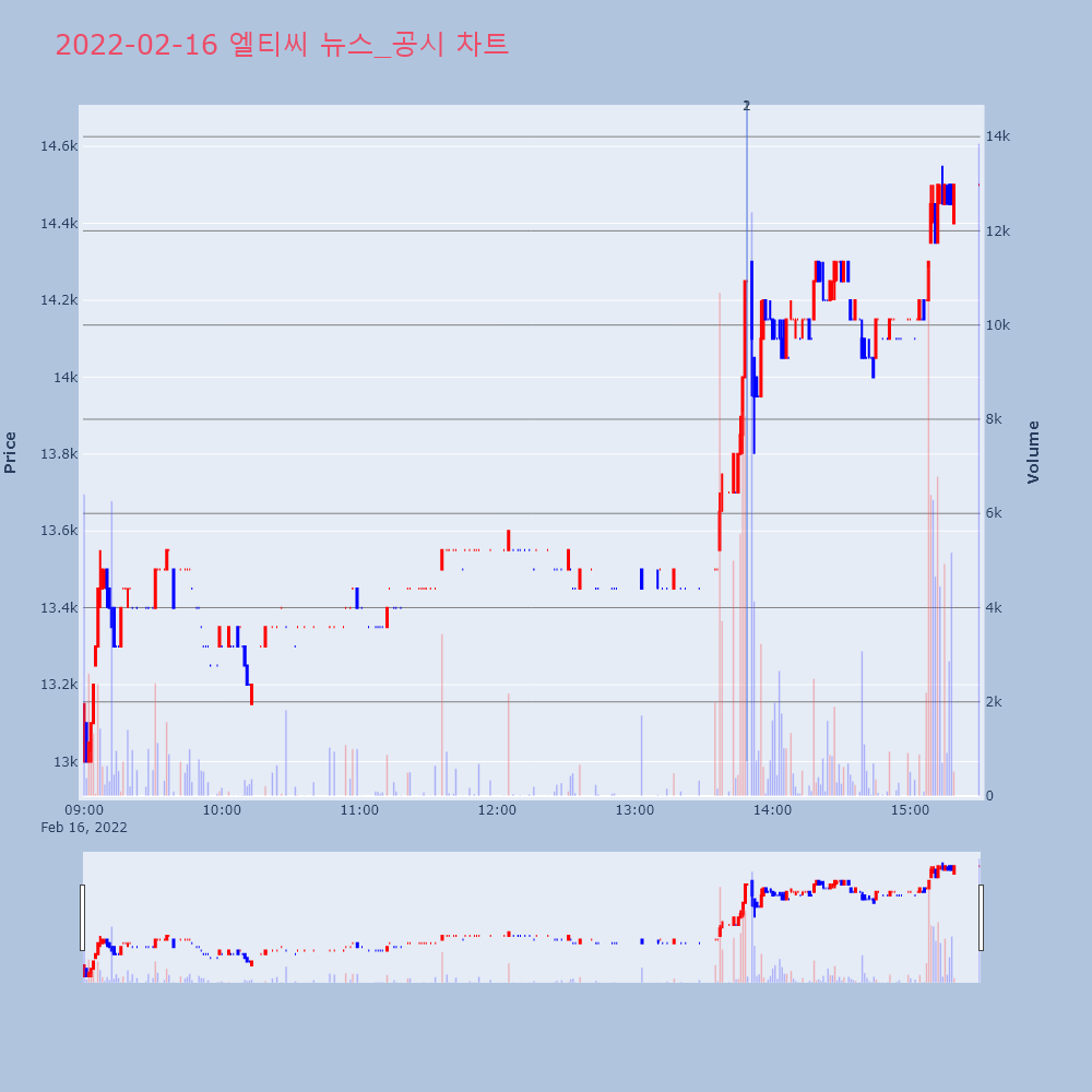 | 2 | 엘티씨, +9.62% VI 발동엘티씨(170920)가 VI가 발동했다. 전일 대비 9 | 조선경제 | 엘티씨 | 2022-02-16 13:49:05 |