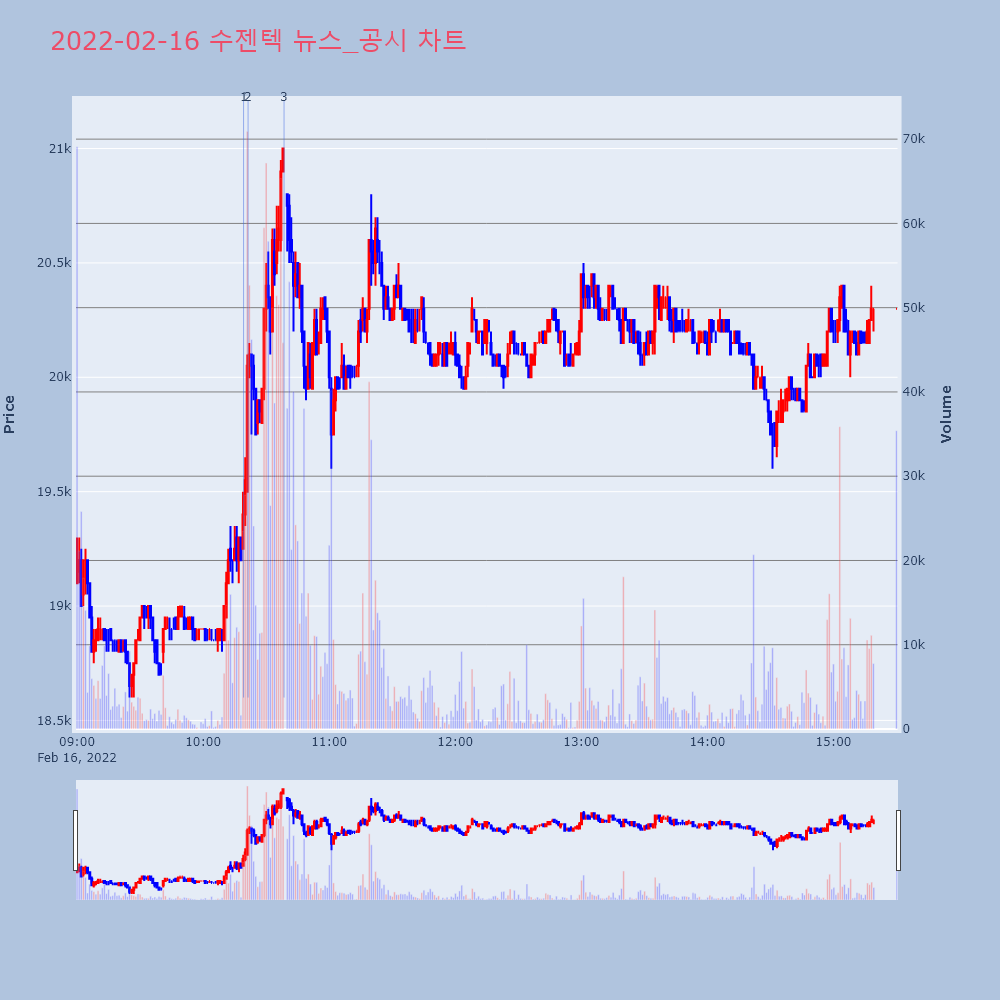 | 3 | 수젠텍, +14.44% VI 발동수젠텍(253840)이 VI가 발동했다. 전일 대비 1 | 조선경제 | 수젠텍 | 2022-02-16 10:38:31 |