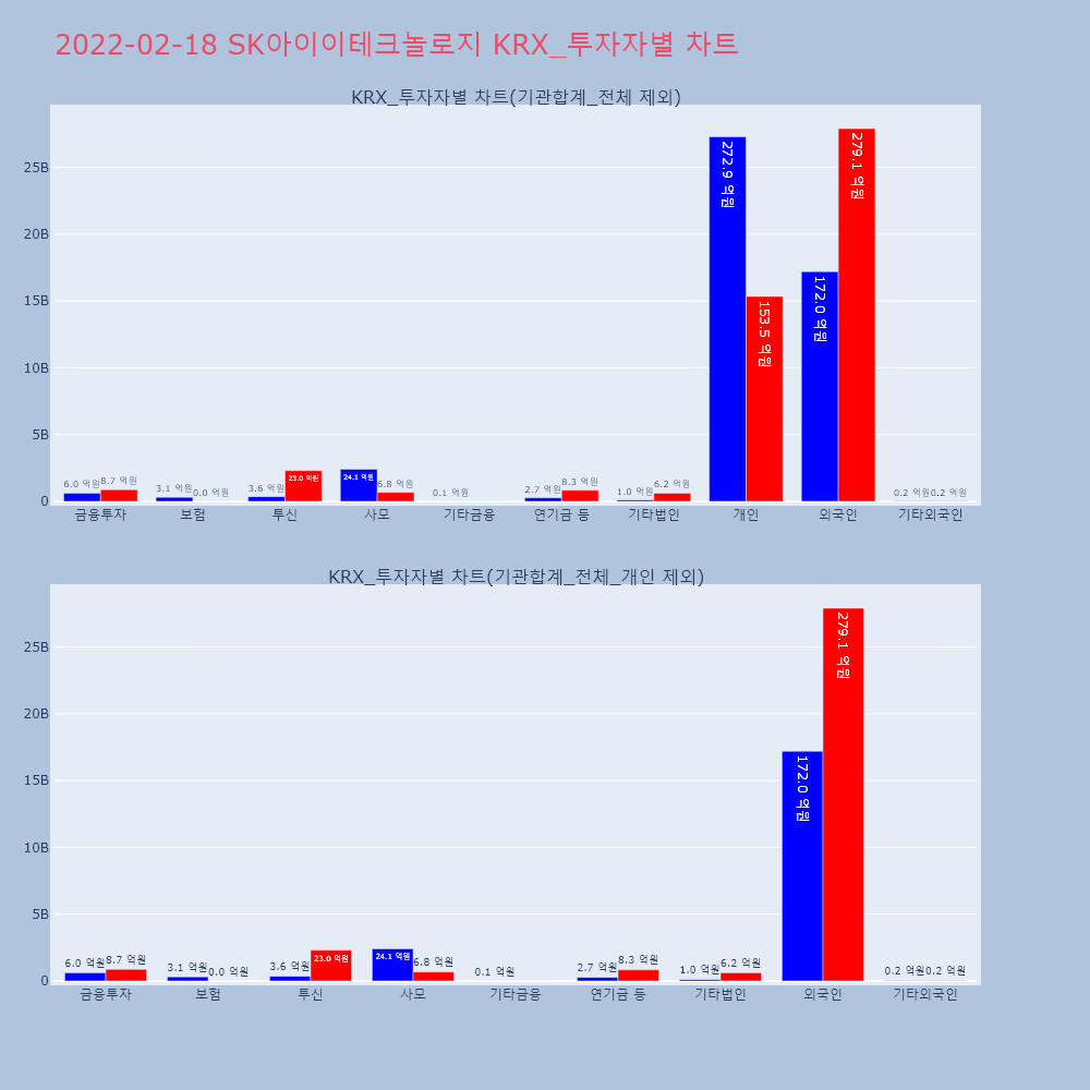 | 외국인 | 422,380 | 185,879 | -236,501 | 13,920,878,700 | 6,157,692,250 | -7,763,186,450 |