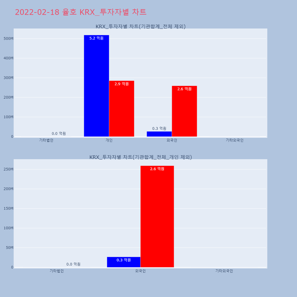 | 투자기관 | 거래량_매도 | 거래량_매수 | 거래량_순매수 | 거래대금_매도 | 거래대금_매수 | 거래대금_순매수 |