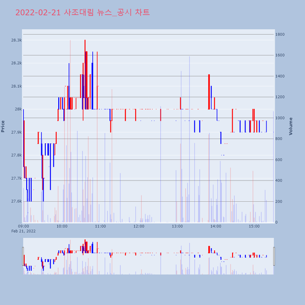 | 2022-02-21 16:33:00 | 20220221900851 | 매출액또는손익구조30%(대규모법인은15%)이상변동 |
