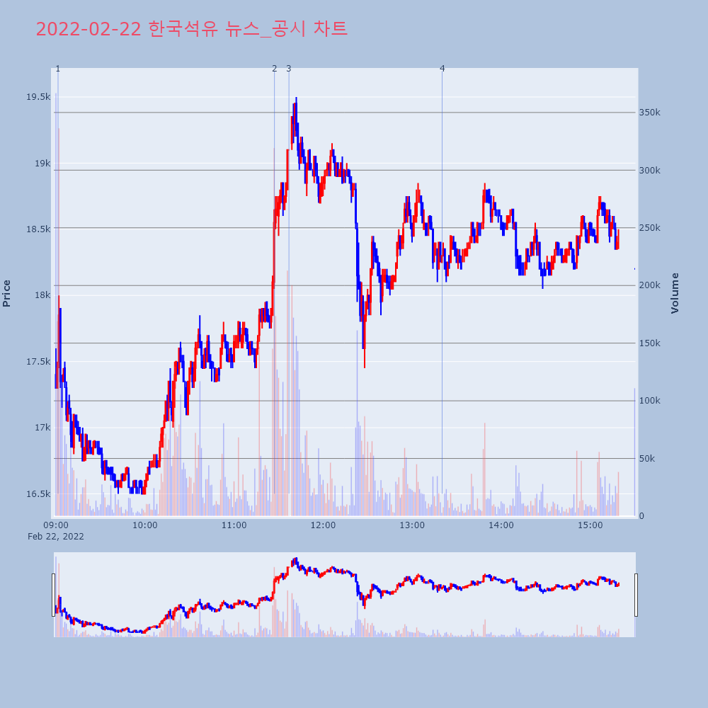 | 3 | 한국석유, +19.38% VI 발동한국석유(004090)가 VI가 발동했다. 전일 대비 | 조선경제 | 한국석유 | 2022-02-22 11:37:01 |
