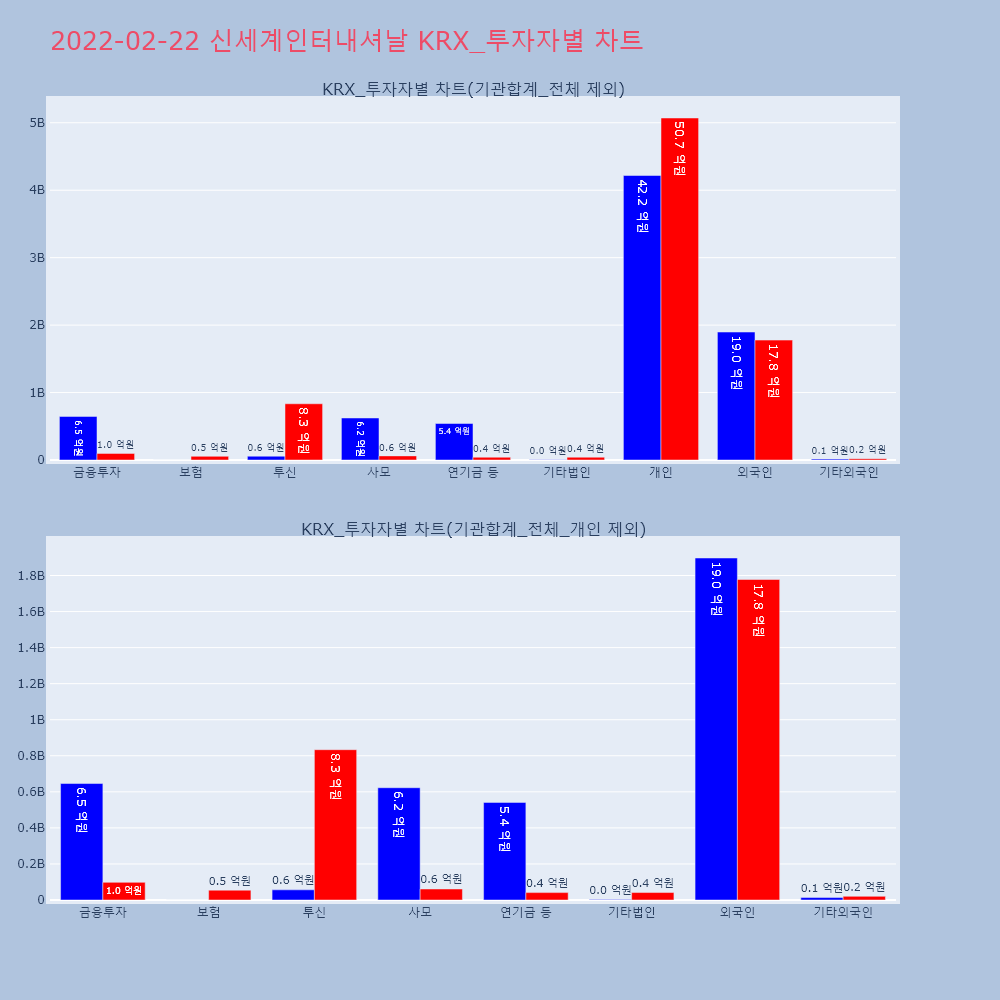 | 투자기관 | 거래량_매도 | 거래량_매수 | 거래량_순매수 | 거래대금_매도 | 거래대금_매수 | 거래대금_순매수 |