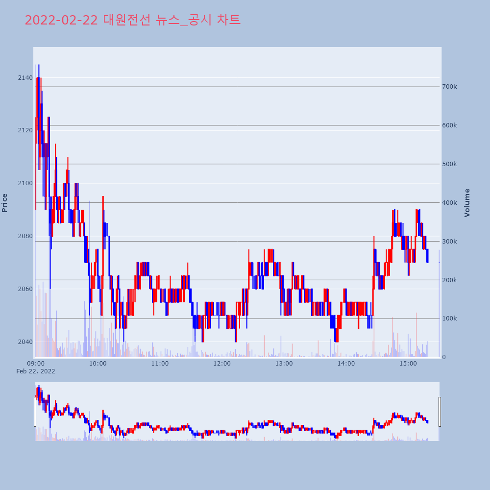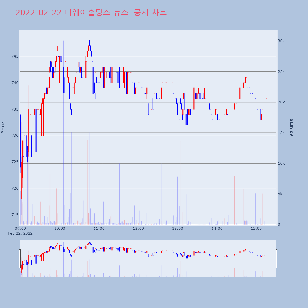 | 2022-02-22 16:27:00 | 20220222900680 | 조회공시요구(현저한시황변동) |