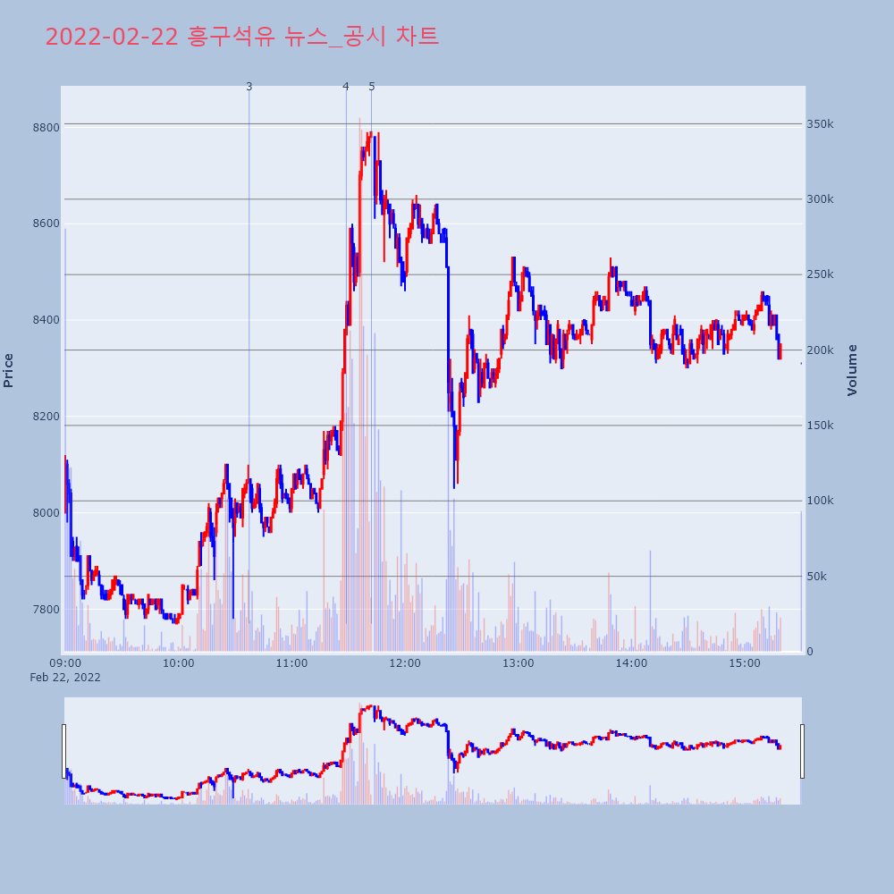 | 5 | 흥구석유, +16.42% VI 발동흥구석유(024060)가 VI가 발동했다. 전일 대비 | 조선경제 | 흥구석유 | 2022-02-22 11:42:14 |