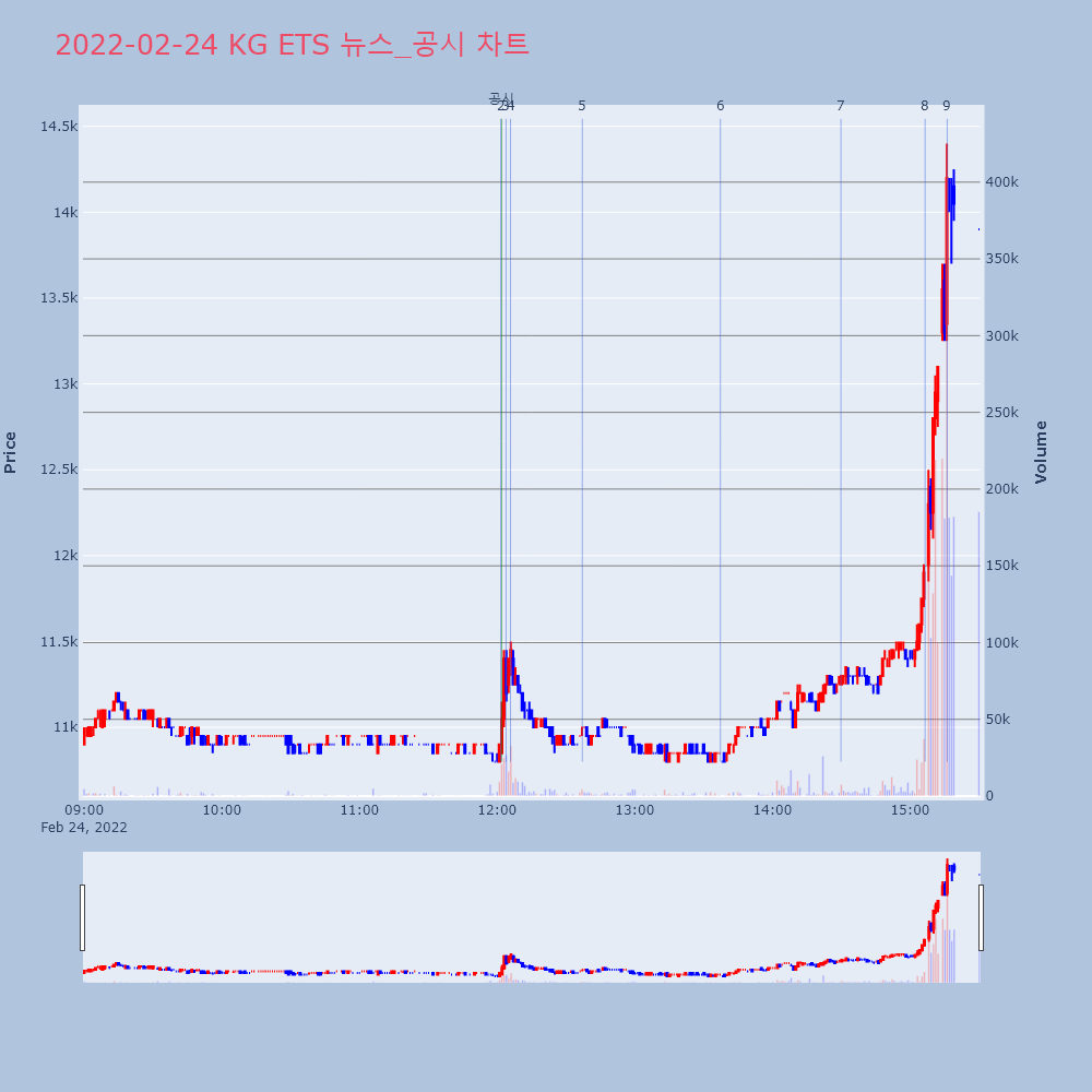 | 8 | KG ETS, +6.73% VI 발동KG ETS(151860)가 VI가 발동했다. 전일 대 | 조선경제 | KG ETS | 2022-02-24 15:06:31 |