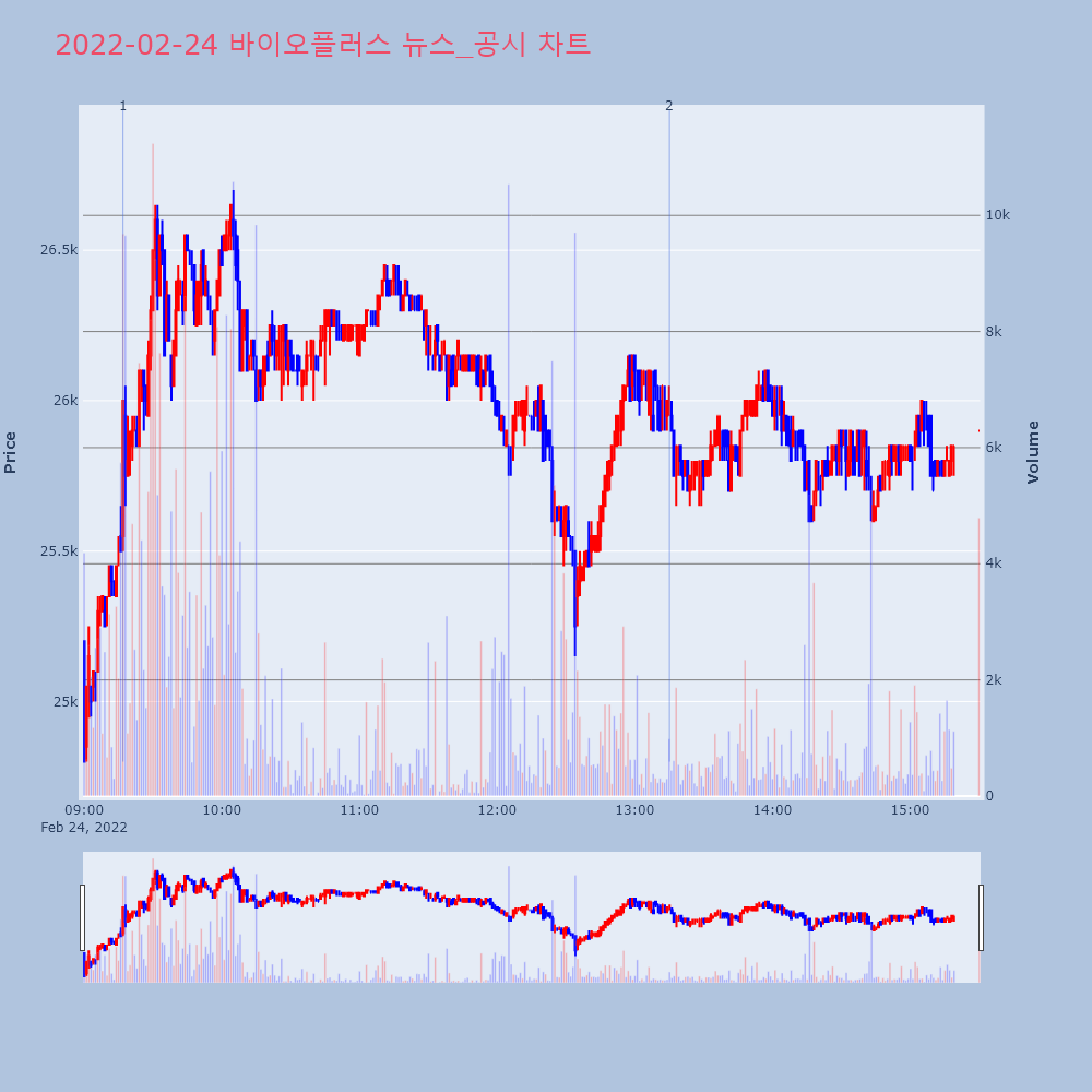 | 2 | [특징주] 바이오플러스, 중국 사업 성장 본격화 분석에 강세 제목 : [특징주] 바이오플러스, 중국 사업 성장 본격 | 인포스탁 | 바이오플러스 | 2022-02-24 13:15:08 |
