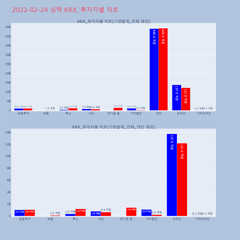 | 외국인 | 347 | 75 | -272 | 9,975,400 | 2,097,900 | -7,877,500 |