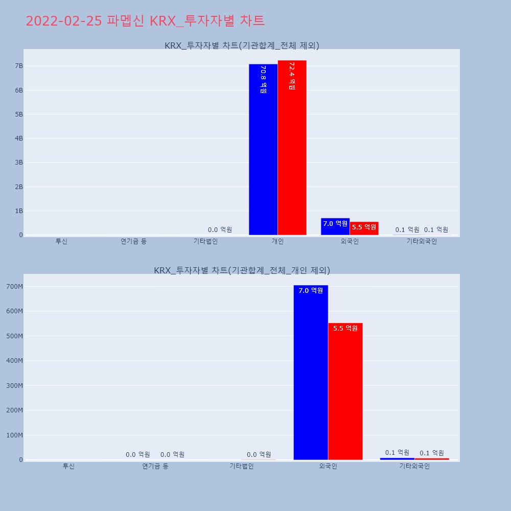 | 투자기관 | 거래량_매도 | 거래량_매수 | 거래량_순매수 | 거래대금_매도 | 거래대금_매수 | 거래대금_순매수 |