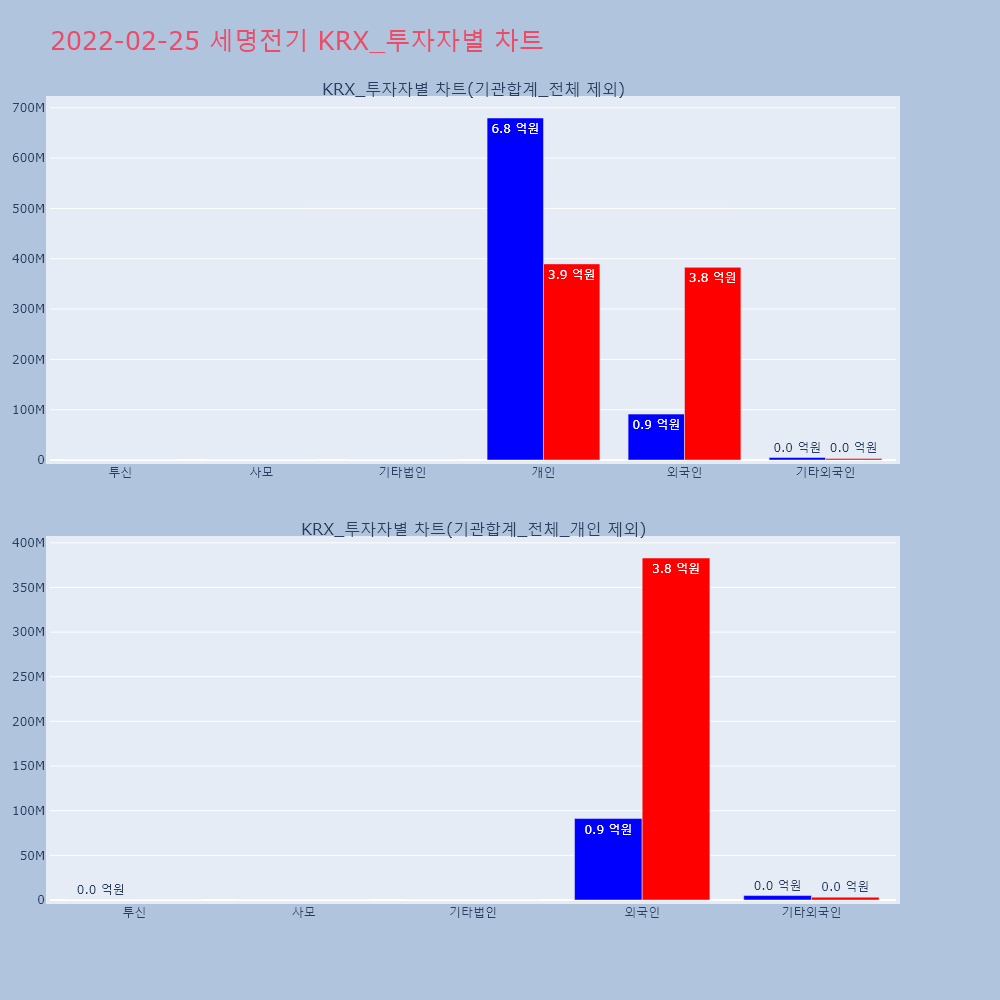 | 투자기관 | 거래량_매도 | 거래량_매수 | 거래량_순매수 | 거래대금_매도 | 거래대금_매수 | 거래대금_순매수 |