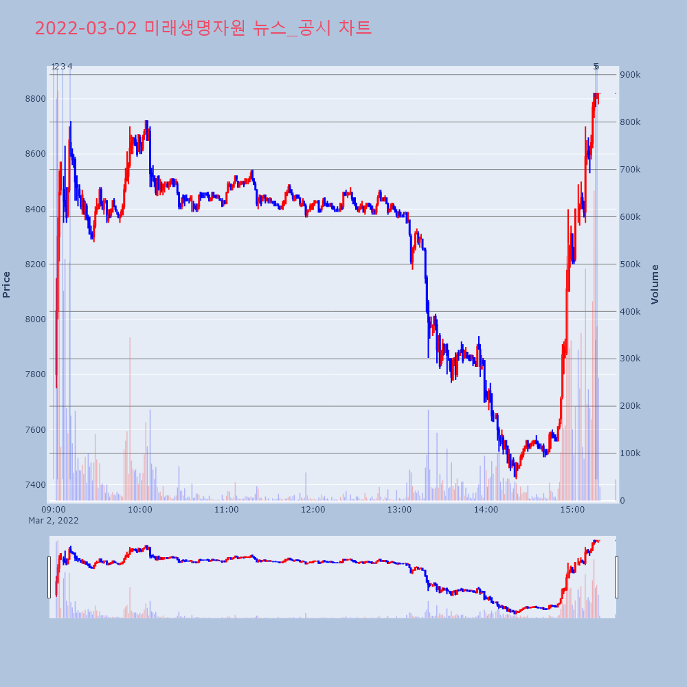 | 4 | [특징주] 미래생명자원, 전쟁 위기감 고조 밀 생산량 급감 우려에 강세 제목 : [특징주] 미래생명자원, 전쟁 위기감 고조 밀 | 인포스탁 | 미래생명자원 | 2022-03-02 09:11:31 |