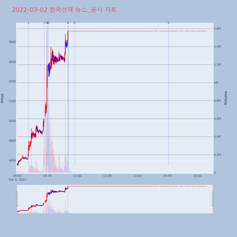 러시아-우크라이나 위기 고조 속 밀 생산량 급감 우려 및 글로벌 곡물가 강세 등에 사료 테마 상승 속 상한가 [내용출처: 인포스탁 infostock]