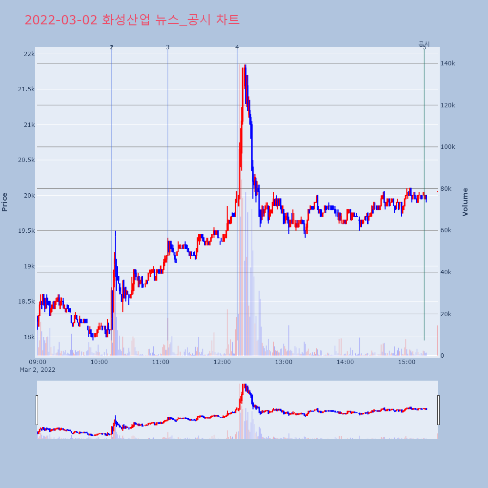 | 4 | 화성산업, +8.67% VI 발동화성산업(002460)이 VI가 발동했다. 전일 대비 | 조선경제 | 화성산업 | 2022-03-02 12:14:43 |