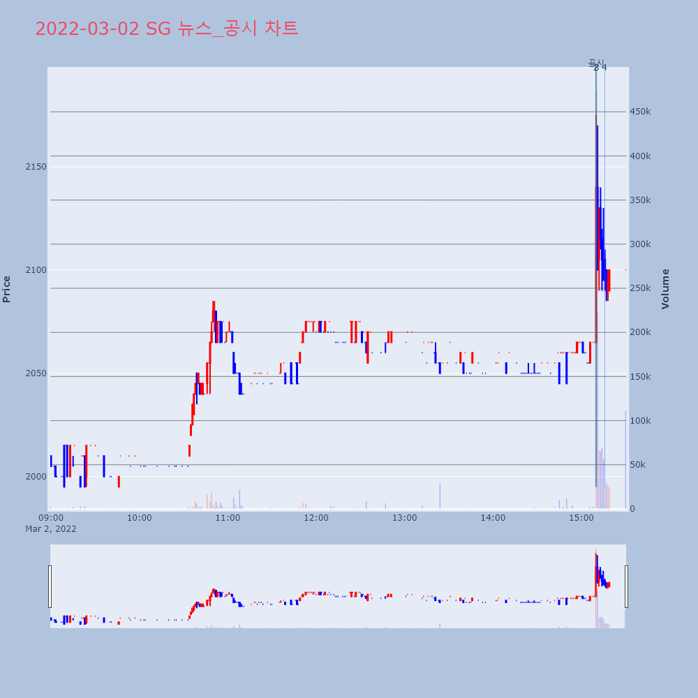 | 3 | SG, +6.23% 상승폭 확대SG(255220)가 상승폭을 확대하고 있다. 전일 대 | 조선경제 | SG | 2022-03-02 15:10:24 |