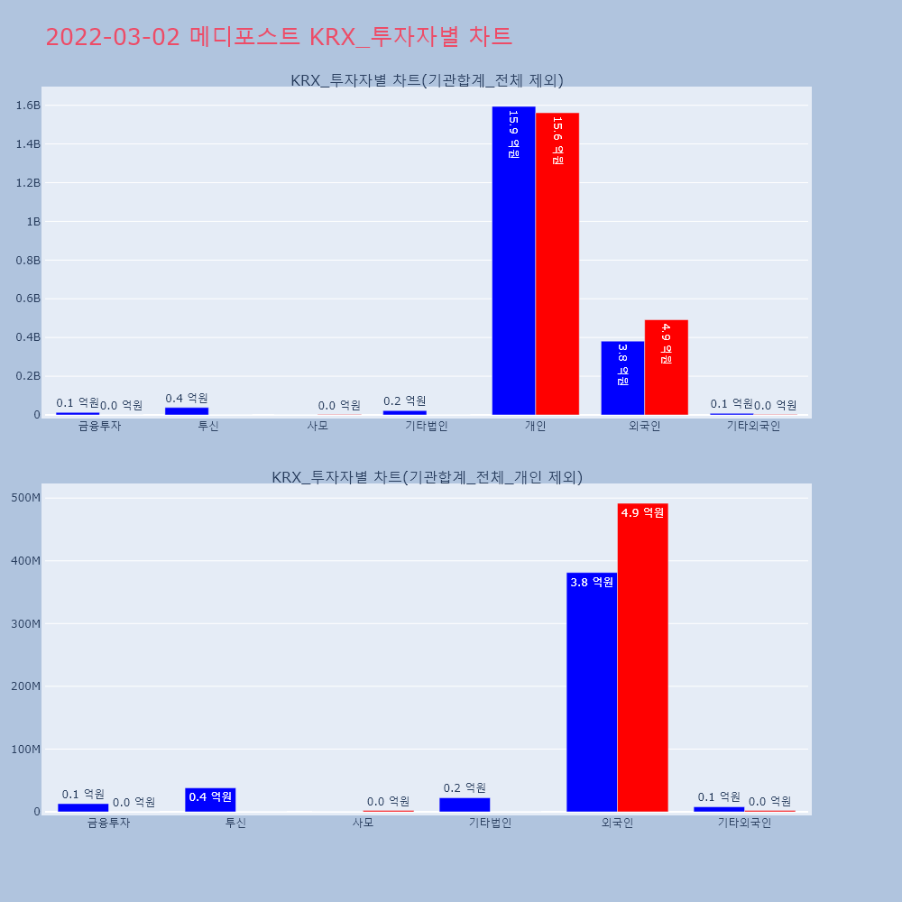 | 투자기관 | 거래량_매도 | 거래량_매수 | 거래량_순매수 | 거래대금_매도 | 거래대금_매수 | 거래대금_순매수 |