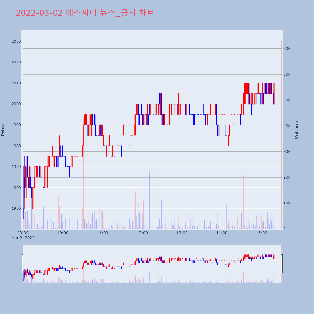 | 2022-03-02 16:25:00 | 20220302900900 | 매출액또는손익구조30%(대규모법인은15%)이상변동 |