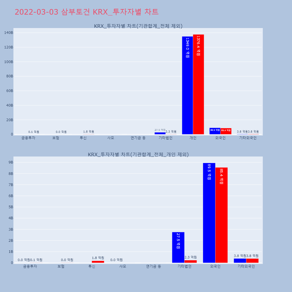 | 투자기관 | 거래량_매도 | 거래량_매수 | 거래량_순매수 | 거래대금_매도 | 거래대금_매수 | 거래대금_순매수 |