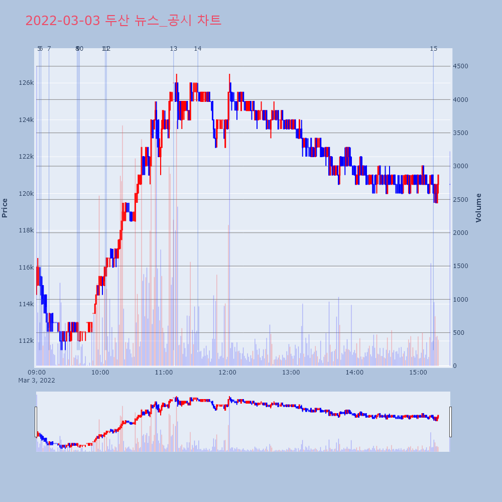 13 | 두산, +13.00% VI 발동두산(000150)이 VI가 발동했다. 전일 대비 13 | 조선경제 | 두산 | 2022-03-03 11:09:13 |