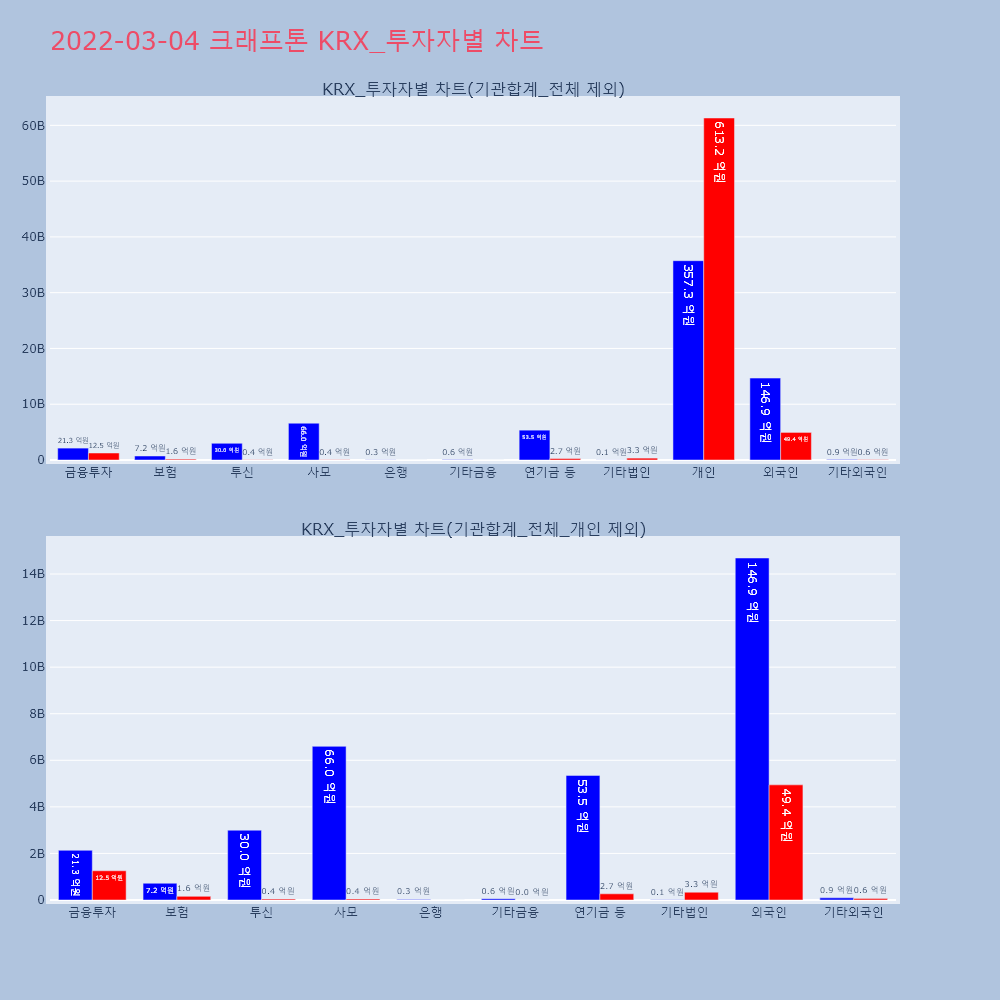 | 투자기관 | 거래량_매도 | 거래량_매수 | 거래량_순매수 | 거래대금_매도 | 거래대금_매수 | 거래대금_순매수 |
