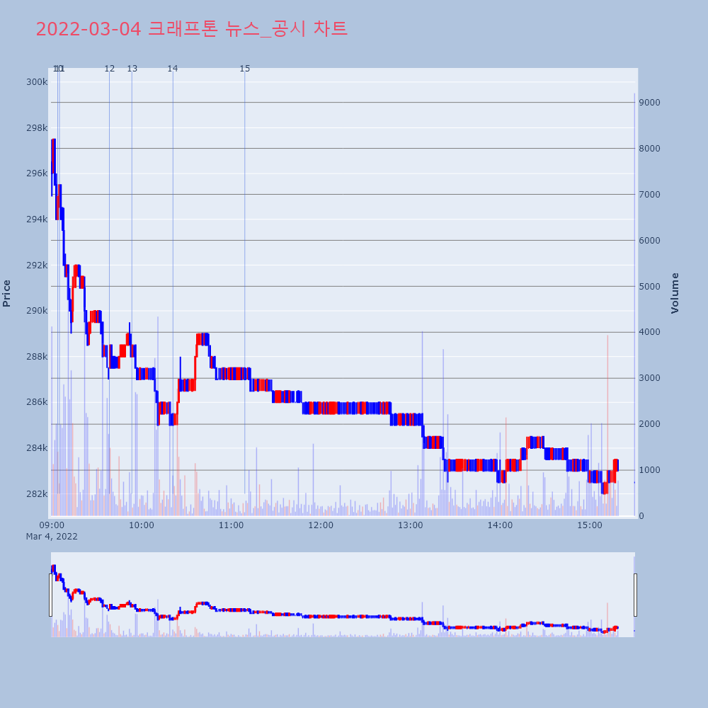 | 11 | [업종 대표주] 게임엔터테인먼트: 크래프톤 -1.17% 출발게임엔터테인먼트 업종 대표주인 크래프톤(259960)이 | 조선경제 | 크래프톤 | 2022-03-04 09:05:08 |