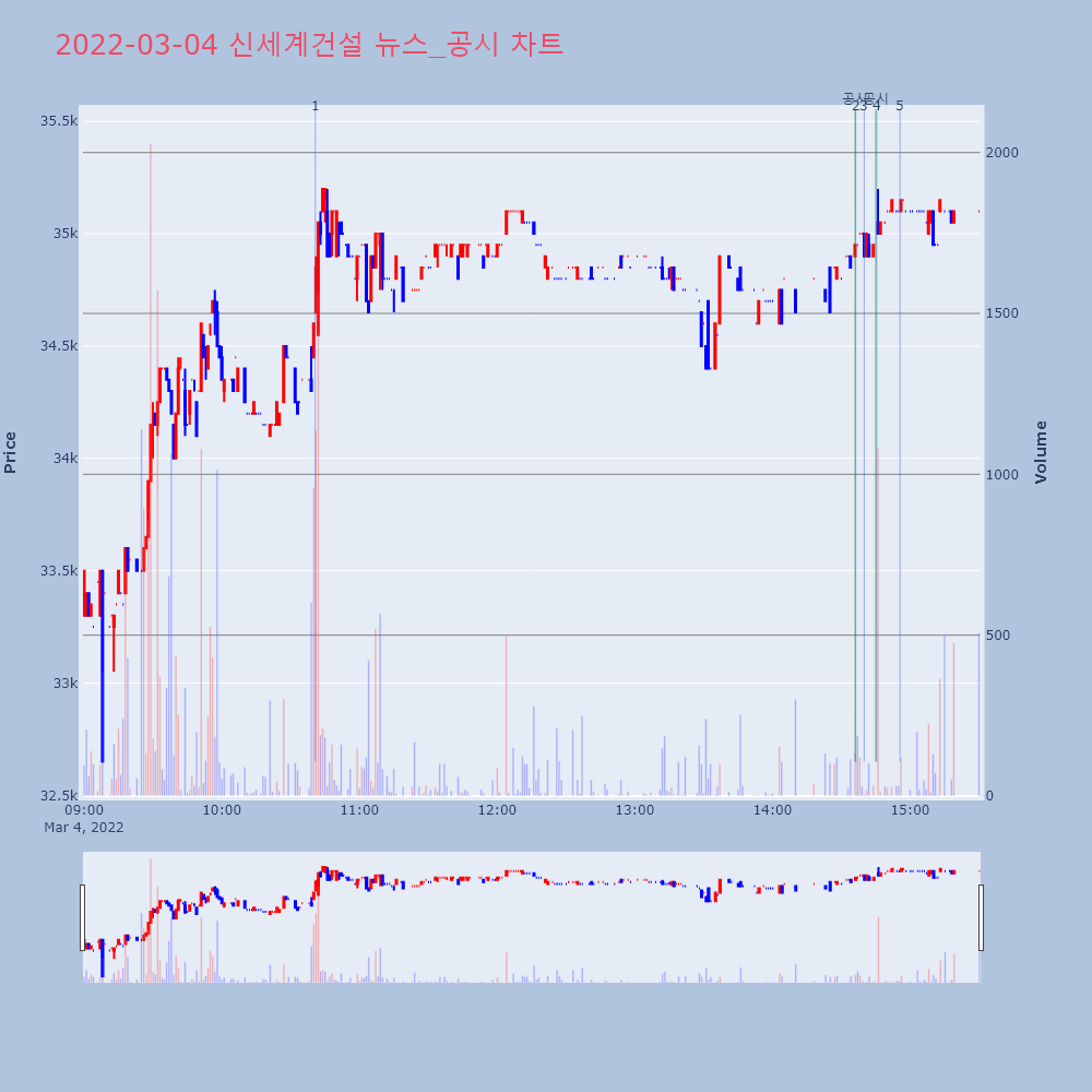 | 4 | 신세계건설 수주공시 - 천안 백석동 공동주택 신축공사 896.4억원 (매출액03월 04일 신세계건설(034300)은 수주공시를 | 한경/증권 | 신세계건설 | 2022-03-04 14:45:25 |