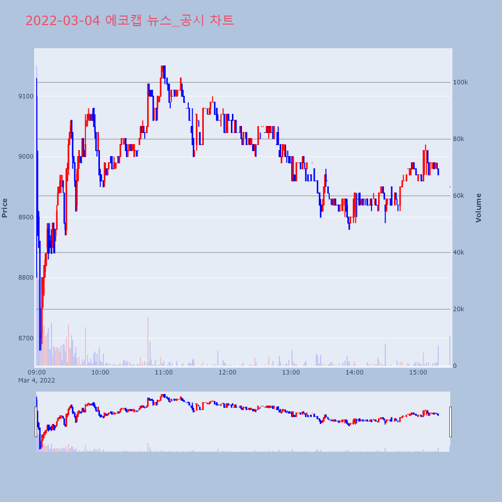 | 2022-03-03 17:14:00 | 20220303900908 | 매출액또는손익구조30%(대규모법인은15%)이상변동 |
