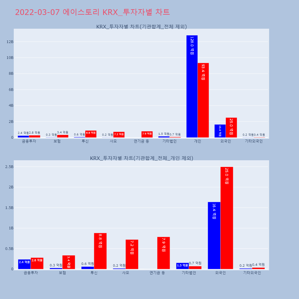 | 투자기관 | 거래량_매도 | 거래량_매수 | 거래량_순매수 | 거래대금_매도 | 거래대금_매수 | 거래대금_순매수 |