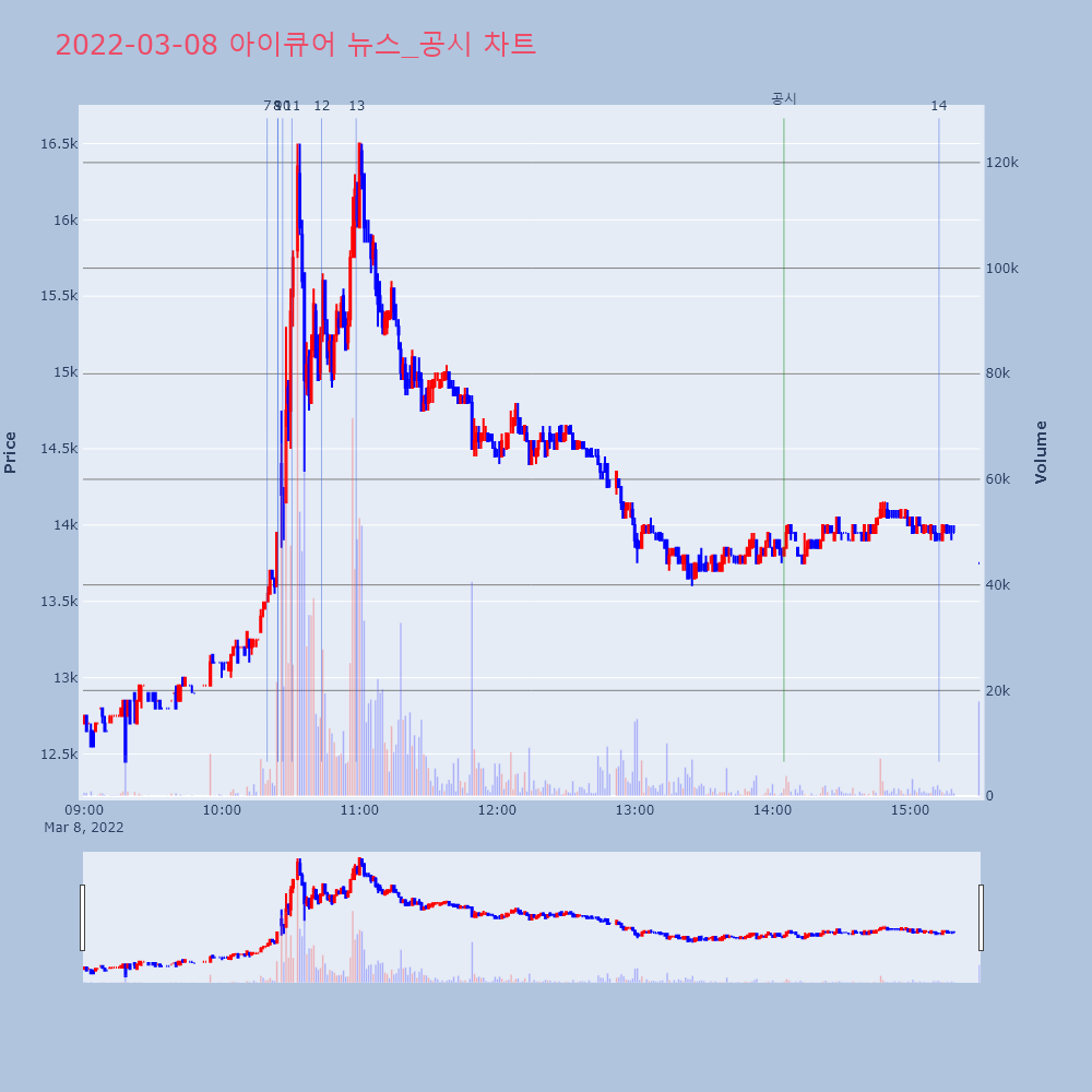 | 14 | [IR일정] 아이큐어, 최근 경영 현황 및 주요 이슈아이큐어, 최근 경영 현황 및 주요 이슈일정 : 202 | IR GO | 아이큐어 | 2022-03-08 15:12:35 |