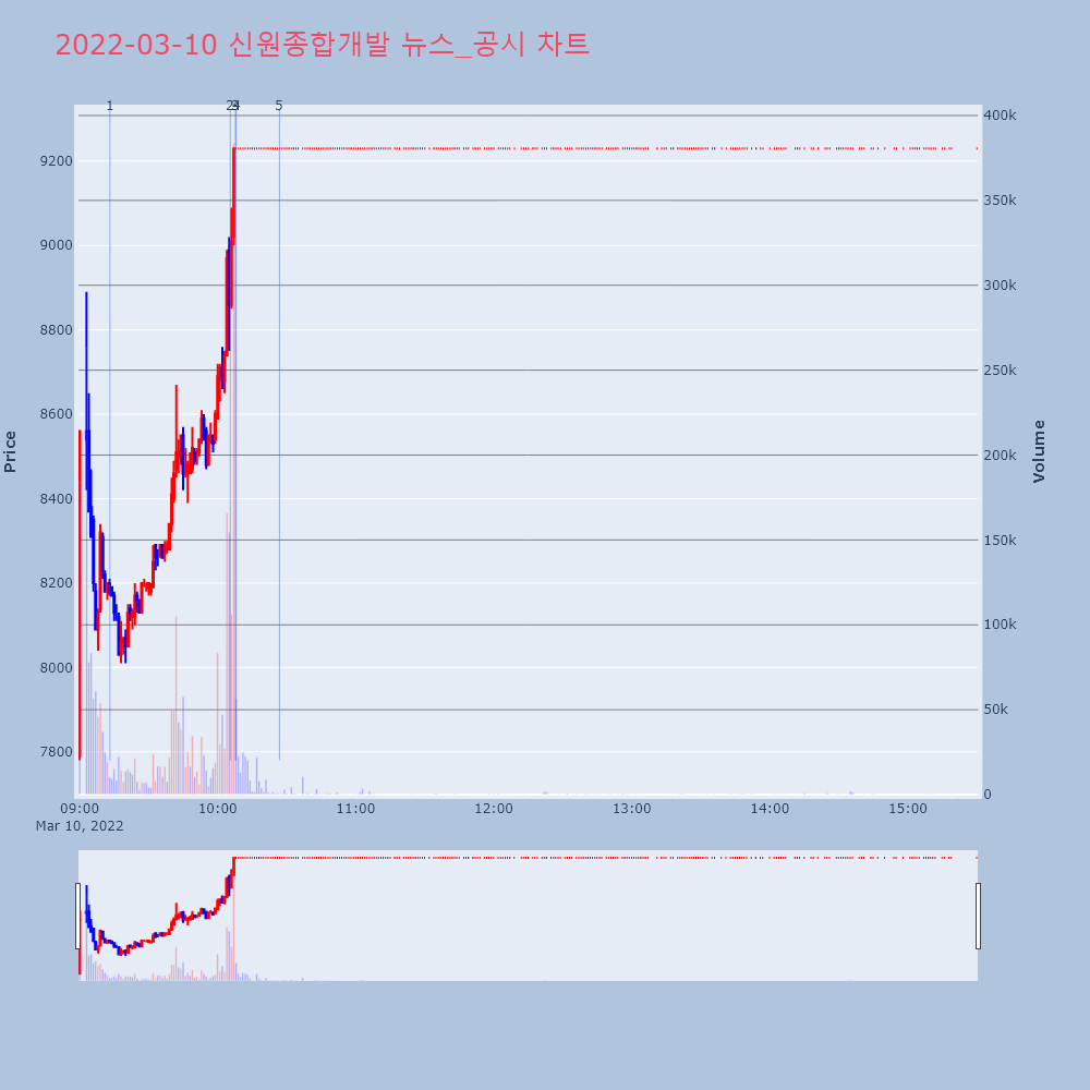 | 4 | [이시각 상한가] 신원종합개발(▲2130) - 10일 오전 10시7분[이투데이/e2BOT 기자(e2bot@etoday.co | 이투데이 | 신원종합개발 | 2022-03-10 10:08:02 |
